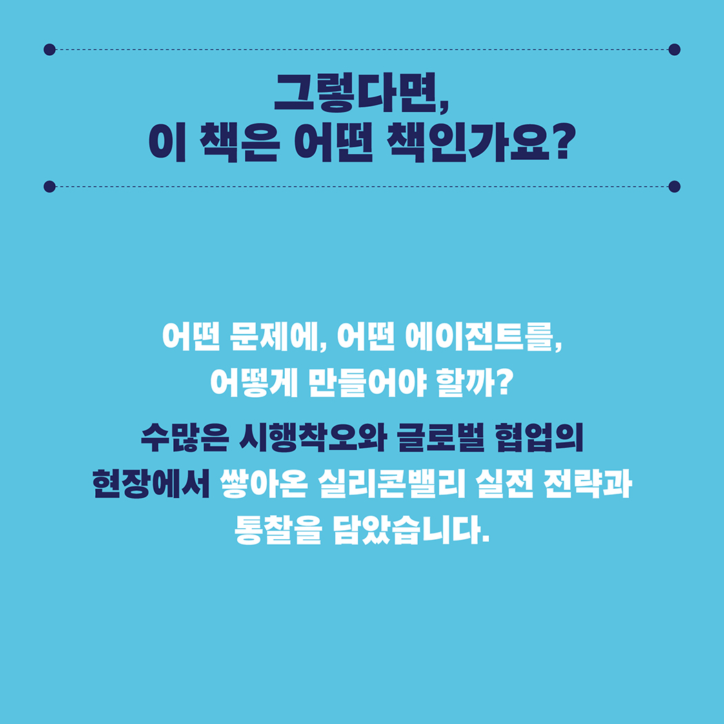 기획자, 개발자, PM, 비즈니스 리더 등 각 역할에 맞춘 실전 적용 전략도 풍부하게 제시된다. 실리콘밸리에서 세계 최초로 API와 GUI가 결합된 하이브리드 다중 에이전트 시스템을 상용화하고, 국내외 대기업들과 협업해온 저자의 경험이 고스란히 담겼다.
